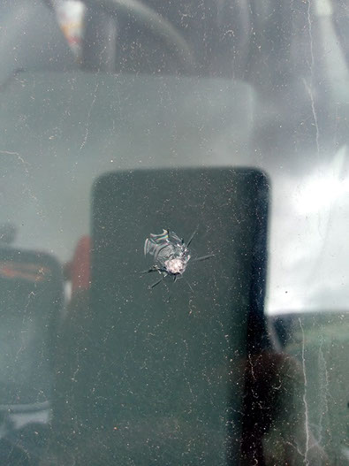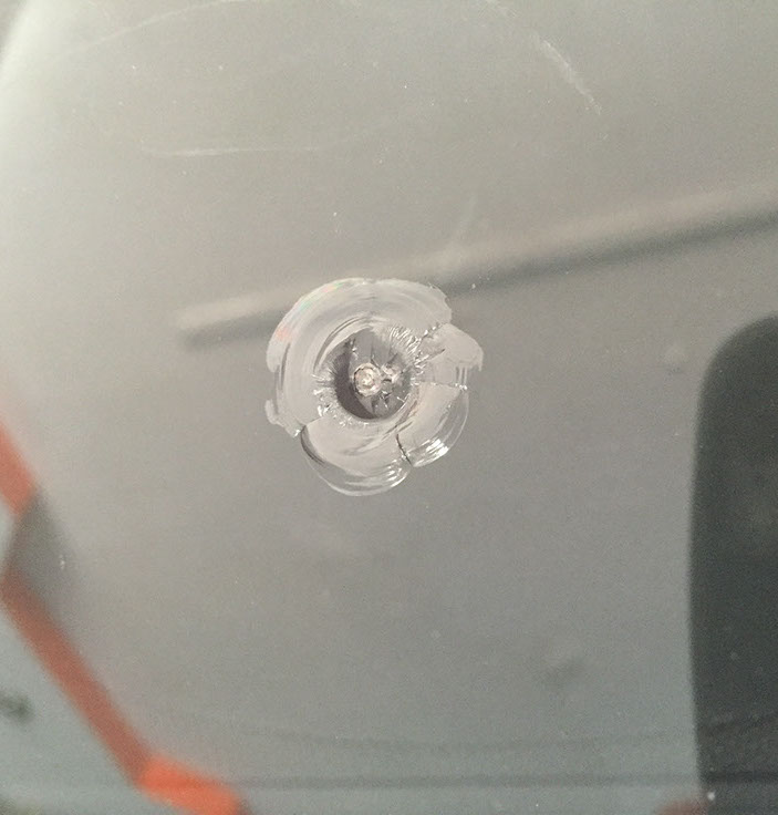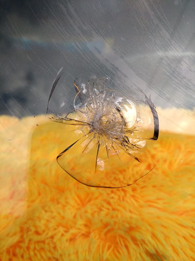 • El impacto rompe el vidrio exterior y se forma una especie de circulo estrella con muchas puntas o una grieta en forma de línea.